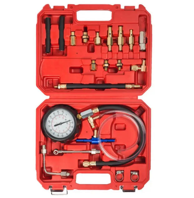 Універсальний манометр Rewolt T7004 призначений для вимірювання тиску в системах подачі пального бензинових і дизельних двигунів. Використовується для діагностики інжекторних систем, дозволяє виявити несправності та перевірити роботу форсунок. Підходить для професійного та домашнього використання.